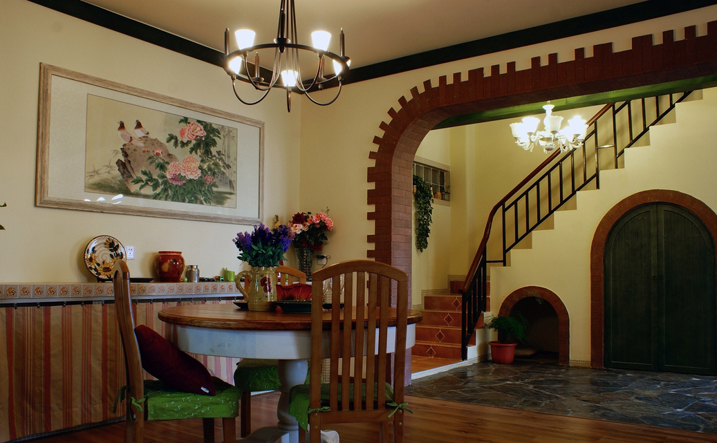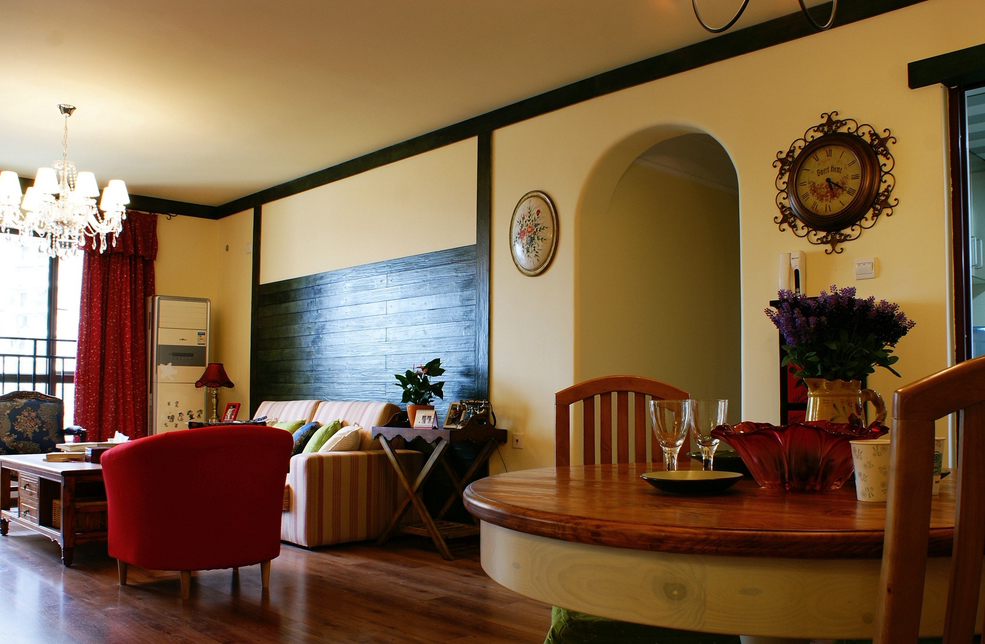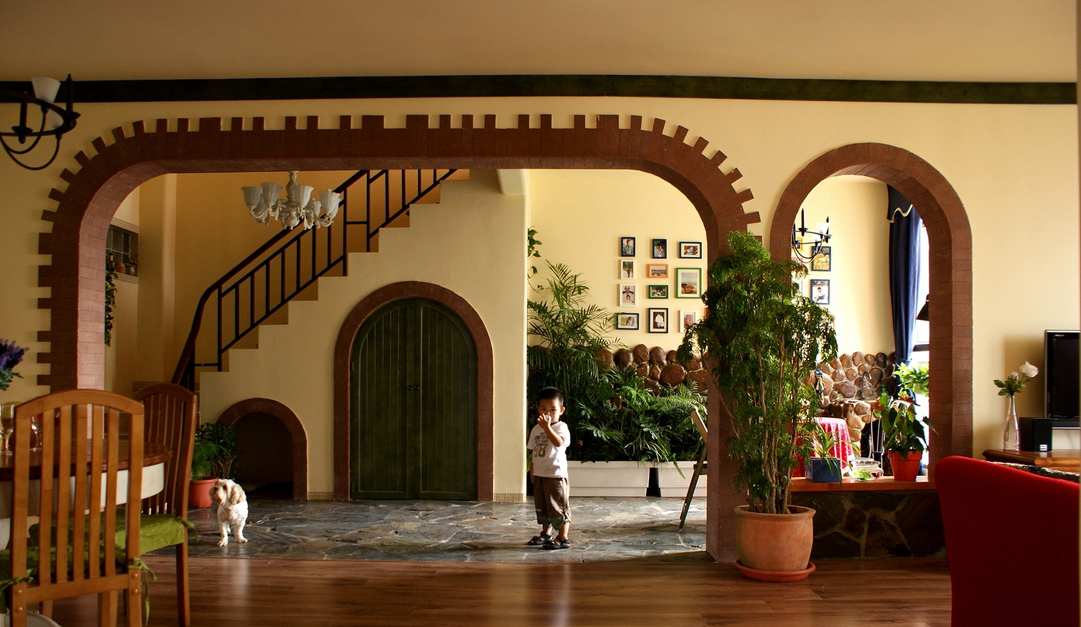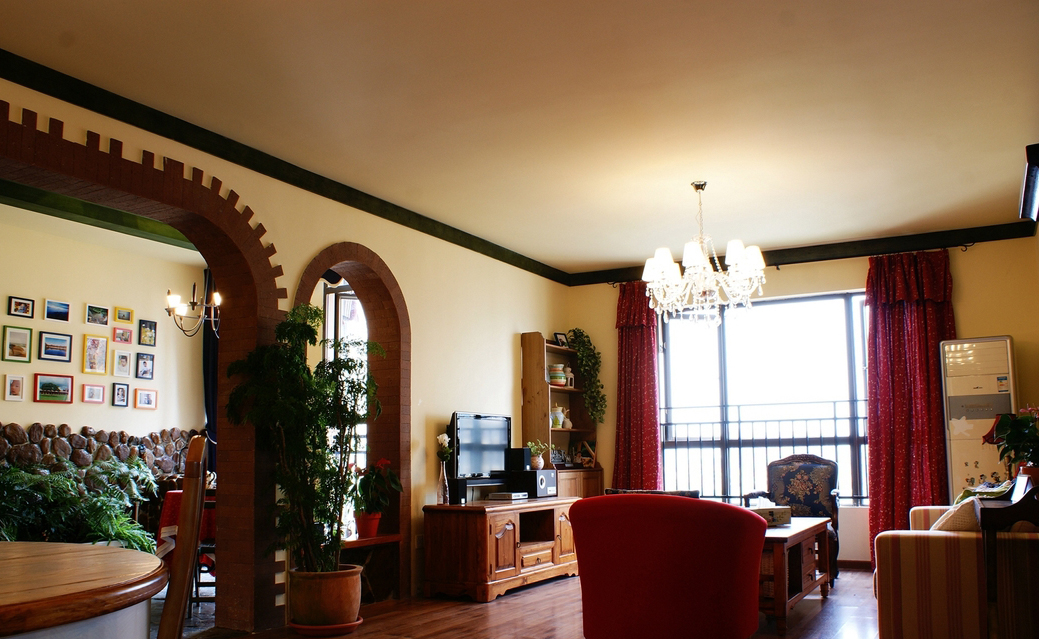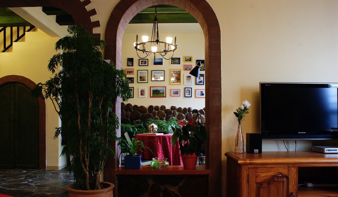 “北緯23.5度、南緯23.5度之間,分布著綠色宮殿般的熱帶雨林。從散布巖石小山的低地平原,到溪流縱橫的高原峽谷,參天的大樹、纏繞的藤蘿、繁茂的花草...多樣的地貌和植物,交織出形態(tài)萬千的雨林景觀...” “熱帶雨林季風(fēng)氣候下,磚紅壤以顏色類似燒制的紅磚而得名。”整個(gè)設(shè)計(jì)思路,由熱帶雨林的這兩個(gè)特征全面展開...... 業(yè)主愛蜜蓮熱愛大自然,花草,書籍,電影,音樂...“軟裝飾設(shè)計(jì)環(huán)節(jié)”中的每樣配飾都極為重視和熱心(這是形成一個(gè)完整設(shè)計(jì)作品的關(guān)鍵環(huán)節(jié))。步入愛蜜蓮的家,像進(jìn)入一片熱帶雨林,大朵大朵花兒凝成了“熱情”的窗簾、沙發(fā)和臺(tái)布,精心挑選的植物和墨綠的原木裝飾,流動(dòng)著綠意盎然的自然主義休閑精神......